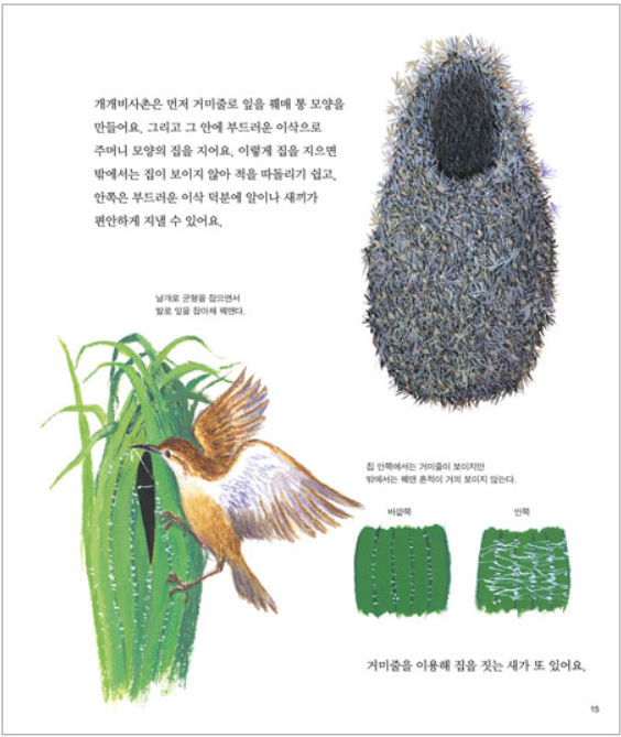 안쪽은 부드러운 이삭 덕분에 알이나 새끼가 편안하게 지낼 수 있어요. --- p.15