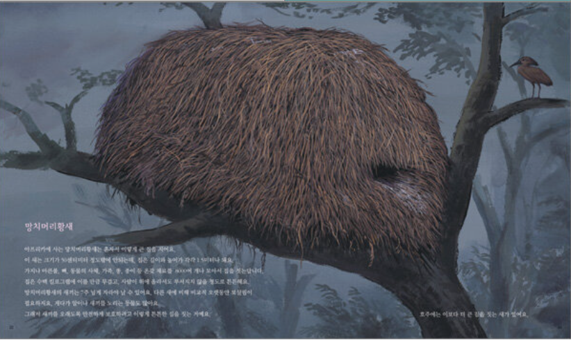『신기한 새집 이야기_최고의 건축가 새들의 집 짓는 기술』은 ‘초등학생이 보는’ 그림책이다. 아직까지 많은 아이들과 부모들이 그림책은 유아들의 전유물이라고 여기는 경향이 있다. 하지만 세계의 아주 희귀한 새들과 그 집은 그림으로 이해하는 게 가장 쉬운 방법이다. 오히려 글을 보지 않아도 그림만으로도 이해가 된다. 나와 내 가족을 넘어 새로운 생명체와 세계, 세계의 사람들과 동물 등에 관심을 갖는 초등학생 아이들에게도 그림은 세상을 이해하는 아주 좋은 도구가 된다.