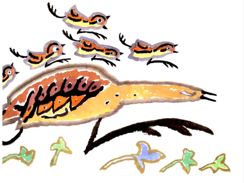 꿩 병아리를 꼭 품고 꼼짝하지 않는 엄마 까투리