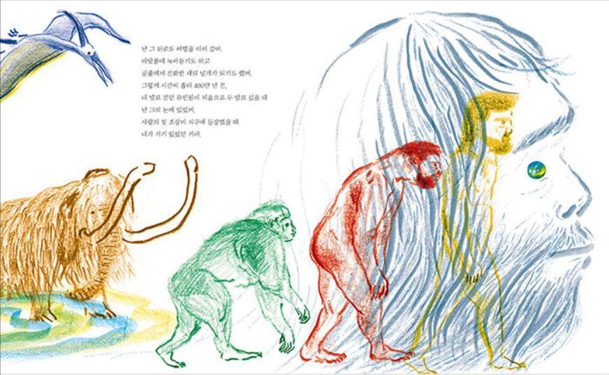 특히 작가만의 해석이 돋보이는 인류의 진화 과정을 표현한 그림이 압권입니다.