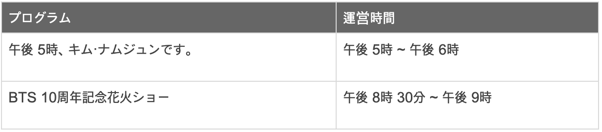 * 若遇雨天预告,活动日程及内容可能有所变动,若发生变动将通过BTS Weverse公告及BTS Official Twitter频道予以通知