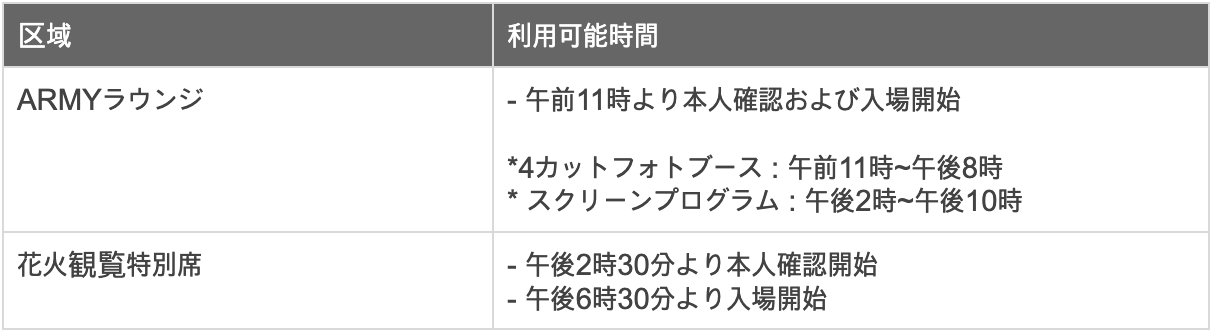 1. ARMYラウンジ(抽選対象:ARMY MEMBERSHIP会員様)