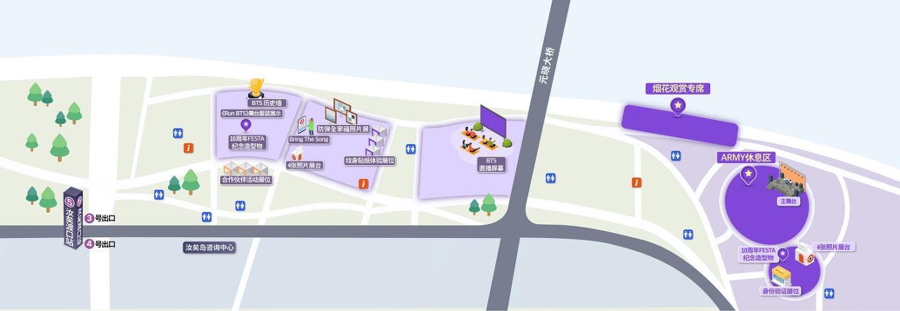 为纪念防弹少年团出道10周年,将在汝矣岛汉江公园举行ARMY与大众均可参与的户外庆典“BTS 10th Anniversary FESTA @汝矣岛”。