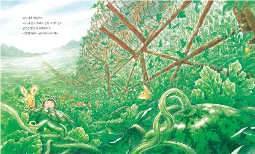작가는 수박이 잘 익기를 바라고 기다리는 농부의 애틋한 마음까지도 담아냈다.