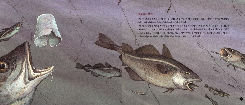대구는 물고기 가운데 큰 편이어서 다 자란 대구를 잡아먹으려고 하는 생물은 거의 없습니다.
