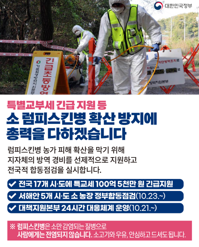 럼피스킨병은 소만 감염되는 질병이지만, 사람에게 전염될 가능성은 낮은 것으로 알려져 있다..