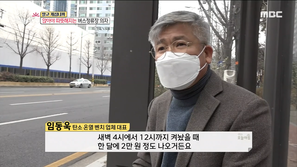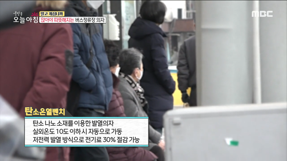앉아야 따뜻해지는 버스정류장의 온열 의자