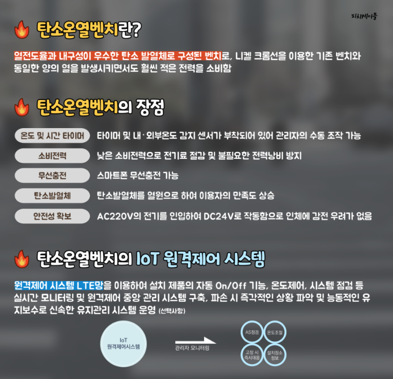무엇보다 탄소발열체를 열원으로 하는 점은 탄소온열벤치가 인기만점일 수밖에 없는 장점이랍니다 :)