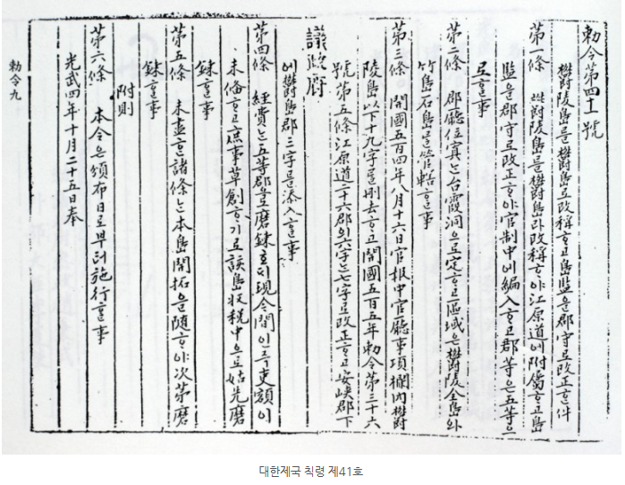 독도를 울릉도의 부속 섬으로 제정한 일을