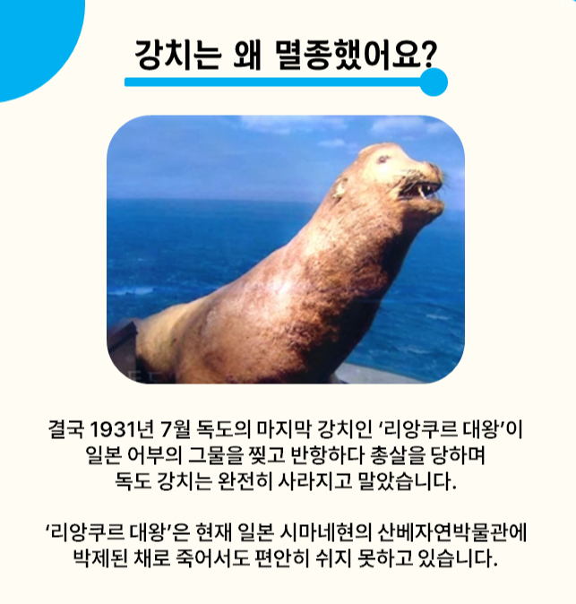 강치의 가죽과 기름을 노린 일제의 과도한 포획 때문이다.
