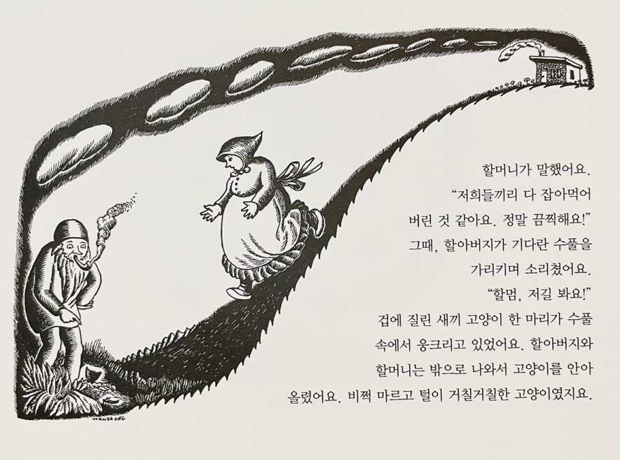 현란한 색채보다 검정색 하나가 얼마나 많은 이야기를 할 수 있는지를 보여 주는 대표적인 그림책이자,