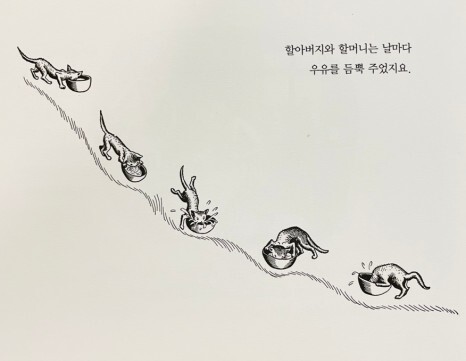 할아버지는 고양이를 구하러 길을 떠났어요.