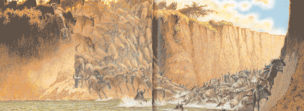 '스승 누의 승리' 에서는 대이동을 하는 누 무리 중에서도 우두머리인 스승 누가 있다.