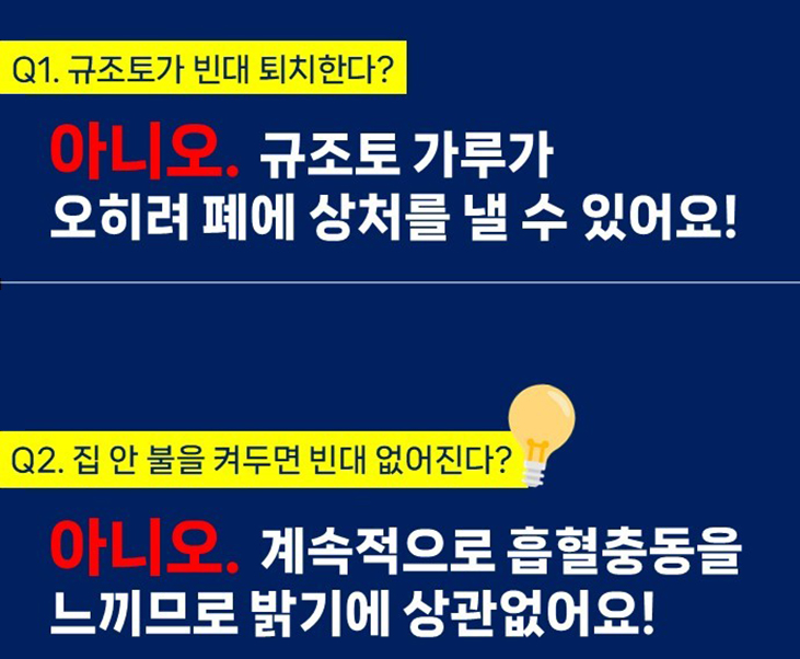아니오. 규조토 가루가 오히려 폐에 상처를 낼 수 있어요!