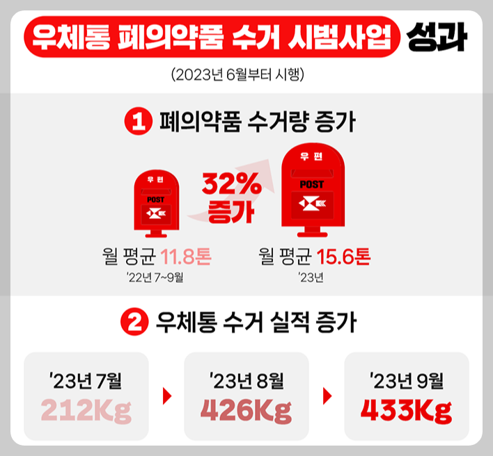 우체통 폐의약품 수거 시범사업 성과 (2023년 6월부터 시행)