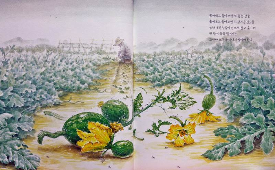 작가는 수박이 잘 익기를 바라고 기다리는 농부의 애틋한 마음까지도 담아냈다.