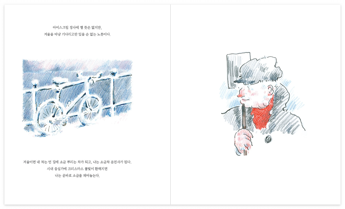 그는 여름이면 트럭을 몰고 나가 아이스크림을 팔고,