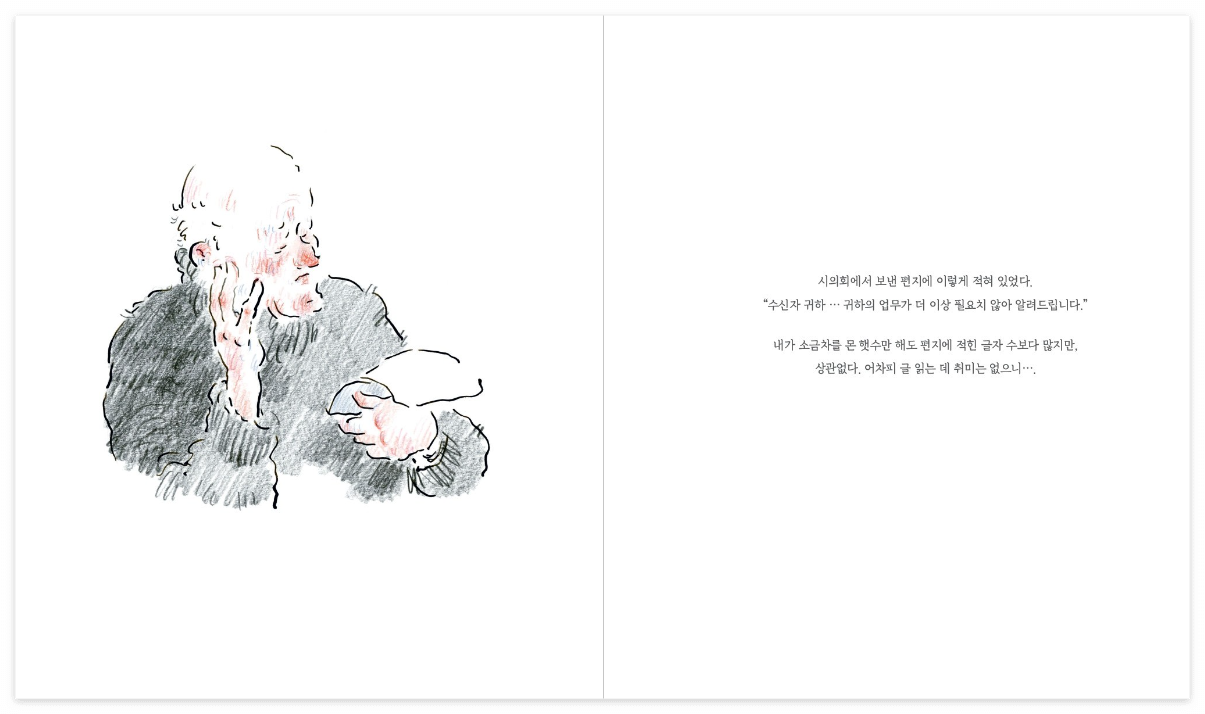색연필과 수채화로 그린 서정적인 그림 사이로,
