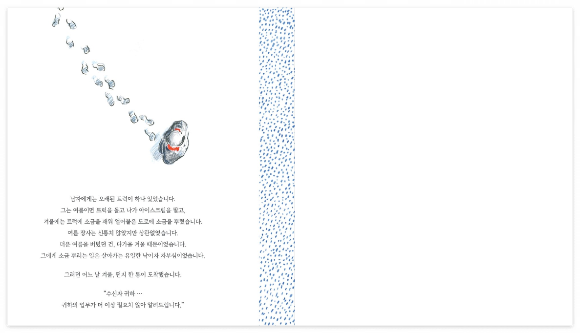 남자에게 소금 뿌리는 일은 살아가는 유일한 낙이자 자부심이었다.