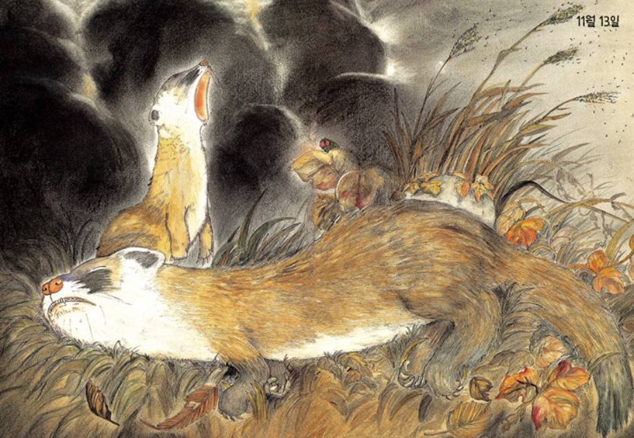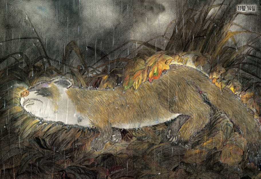 늦가을, 작은 동물이 죽었어요.